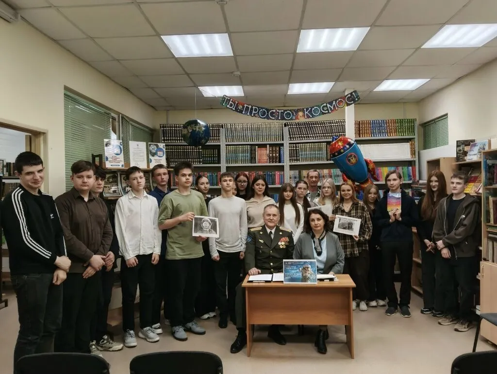 В рамках Недели космоса в России в нашей библиотеке для учащихся школы состоялся диалог с руководителем Самарской школы будущих космонавтов, подполковником запаса, ветераном Космических войск ВКС РФ, поэтом - Евгением Николаевичем Киселевым.